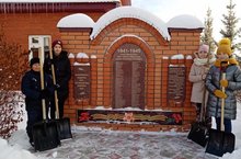 Юные тимуровцы очистили от снега мемориал, посвященный героям ВОВ.