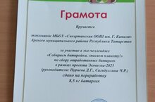 Эта акция направлена на то, чтобы научить наших детей с малых лет заботиться об окружающей среде и прививать им любовь к экологии. Собранные батарейки отправятся на специализированные предприятия для переработки. Это позволит избежать загрязнения окружающей среды опасными веществами, которые могут нанести вред природе и здоровью людей. Эти труды учащихся по охране природы были отмечены грамотой.