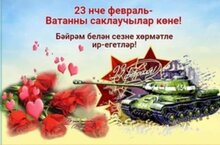 23 февраль — Ватанны саклаучылар көне белән барлык ир-егетләрне, әтиләрне, бабайларны, абыйларны ихластан котлыйбыз!
