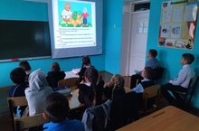 «Туган тел сагында» акциясе кысаларында башлангыч классларда Сикертән балалар бакчасына йөрүче балалар белән берлектә татарча мультфильмнар карау оештырылды. Әкият геройлары буенча әңгәмәләр үтте. Уңай һәм тискәре геройлар ачыкланды. Мультфильмнарның тәрбияви дәрәҗәсе билгеләнелде.
