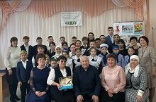 Мәктәбебездә “Туган телем сагында” акциясе дәвам итә. Бу акция кысаларында төрле чаралар үткәрелә, укучылар татар телебезнең матурлыгын, аһәңлеген тоярга өйрәнәләр. Шул уңайдан күренекле язучы Вакыйф Нуриев белән очрашу кичәсе узды. Чарада язучының әсәреннән өзекне “Балкыш” түгәрәгенә йөрүче укучылар сәхнәләштереп күрсәттеләр. Шулай ук кичә моңлы җырлар, шигырьләр, үзенчәлекле биюләр белән үрелеп барды. Язучы укучыларны үзенең иҗаты белән таныштырды. Укучылар һәм укытучылар язучыга үзләрен кызыксындырган сорауларын бирделәр.