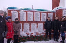 Сугышта һәлак булган авылдашларыбыз истәлегенә венок салдык.