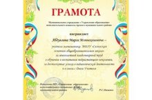Директор школы, учитель математики Абдуллин Марс Миннеханович награжден Грамотой МУ "Управление образования" исполнительного комитета Арского муниципального района за многолетний плодотворный труд в обучении и воспитании подрастающего поколения, за достигнутые успехи в педагогической деятельности и в связи с Днем учителя.