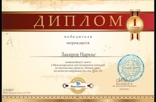 За участие в меңдународном дистанционном конкурсе по математике проекта "Новый урок" ученик 3 класса Починок-Поникской НОШ Закиров Наркис получил Диплом 1 степени. Учитель-Алсу Котдусова.