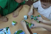 Туган тел атналыгы. Балалар белэн,кубиклардагы татар халык экиятлэрен тозедек. Милли бизэк тошерелгэн пазл белэн уйнадык.