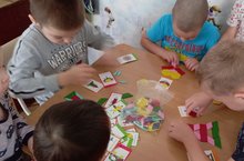 Цель этого занятия была в том,что бы научить детей самостоятельно играть в игры-головлмки,уметь выкладывать из комплекта геометрических фигур,самые различые силуэты.