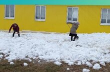 Балалар бакчасы территориясендә кар тарату өмәсе.