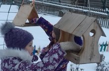 Балаларда кошларга карата мәхәббәт тәрбияләү максатыннан, җимлекләр ясау буенча конкурс оештырылды һәм урамга куеп кошларга җимнәр салдык