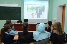 В 7 классе прошел классный час на тему: «Героям, жившим и ушедшим, посвящается…». В ходе классного часа ребята узнали о подвиге нашего земляка Айрата Галяутдинова, который героически погиб 23 сентября в боях за город Лиман. Вспомнили его биографию, рассуждали о героизме.