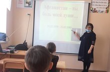 Афганская война стала уже историей. Её заслонили: война в Чечне,боевые действия в Таджикистане, террористические акты,захлестнувшие страну.И тем не менее, в этот день мы склоняем головы перед памятью павших соотечественников и вспоминаем события тех лет, просим оставшихся в живых воинов- интернационалистов поделиться с молодым поколением пережитым прошлым.Эти воспоминания прошлого заставляют увидеть предостережение для настоящего, заставляют думать о будущем.О том будущем, которое для человечества должно быть избавлено от призрака смертельной военной угрозы. В 4 классе прошёл классный час посвящённый выводу советских воиск из Афганистана « Афганистан-ты боль моей души...».Учащиеся познакомились с войной в Афганистане, героизмом солдат и офицеров в этой войне.