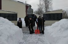 Вооружившись необходимым инвентарем очистили территорию около памятника после обильного снегопада. Все трудились с большим душевным подъемом. Работа оказалась нелегкой, снега намело много, он был твердым и тяжелым. Приятно было видеть результат своего труда. Теперь территория возле памятника погибшим воинам радует глаз всех проходящих, и каждый может подойти и почтить память героев войны.