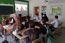 В процессе беседы ребята посмотрели видеоролики: интервью с руководителем РСО Михалом Киселёвым; выполнили интерактивное задание «Город профессий РСО» и посмотрели фильм «Первые. Труд крут»