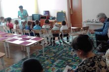 Буген бакчабызда тәрбияче апалар кунакта .Тәрбияче Валиева М.А. "Китап каян килә?" проектын кинәйтү нияте белән "Китап эзеннән тарихка" дигән ачык эшчәнлек күрсәтте.