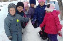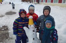 Балалар белән бергәләп, командаларга бүленеп, "Кар бабайлар " конкурсы оештырдык. -