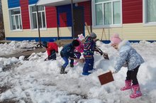 Балаларда кечкенәдән хезмәткә ихтирам тәрбиялибез. Менә бүген дә апаларга ярдәм итәргә ашкынып торалар, күмәкләшеп кар тараталар.