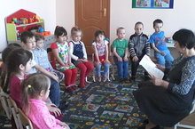 Балалар кисеп ябыштыру шөгылендә "Ракеталар галәмдә" дигән темага күмәк эш башкардылар. Шөгыльнең максаты балаларның космонавтика турында белемнәрен формалаштыру, алган белемнәрен куллана белү һәм кызыксынучанлык уяту иде.