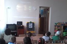 "Космос" проектын тормышка ашыру максатыннан 11 - 15 апрель көннәрендә балаларның космонавтика турындагы белемнәрен ныгыту өчен комплекслы эшләр планлаштырылды. Балаларның кояш системасы турындагы белемнәрен камилләштерү нияте белән күргәзмә материаллардан тыш мультимедийный материал киң кулланыла.