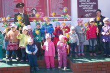 Бу көнне бакчабызда Бөек җиңүнең 70 еллыгына багышланган иртә үтте. Бәйрәмне, сугыш кырында ятып калган батырларыбызны искә алып, 1 минут тынлык белән башлап җибәрдек. Балалар сугышка, ветераннарга, тыл батырларына багышлап шигырьләр сөйләделәр, җырлар җырладылар. Соңыннан сугыш кырында ятып калган авылдашларыбызга куелган һәйкәл каршына венок куйдык.