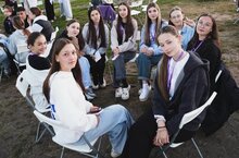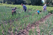 Мәктәп бакчасында 9 класс укучылары җәйге практикада.
