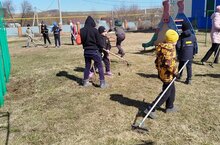 В рамках акции "Эковесна 2025" учителя и ученики привели в порядок детскую площадку.