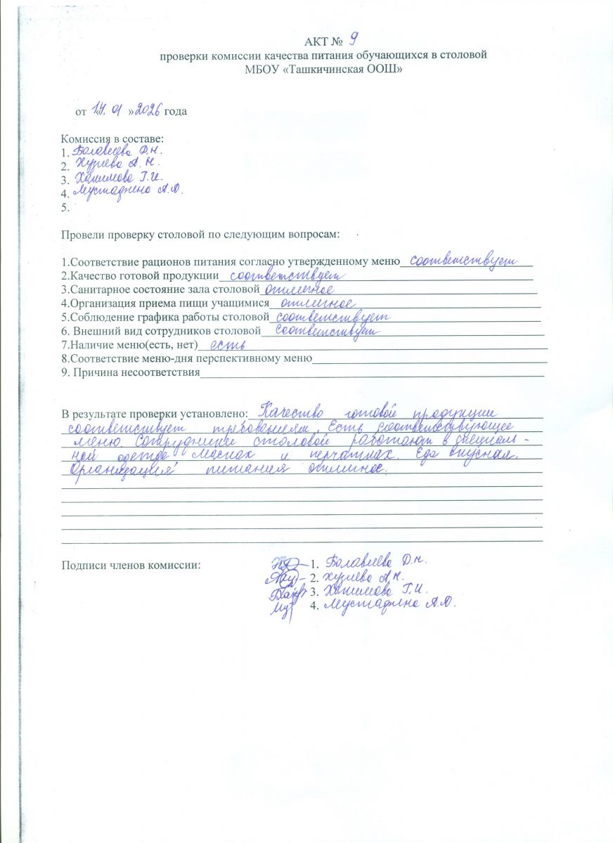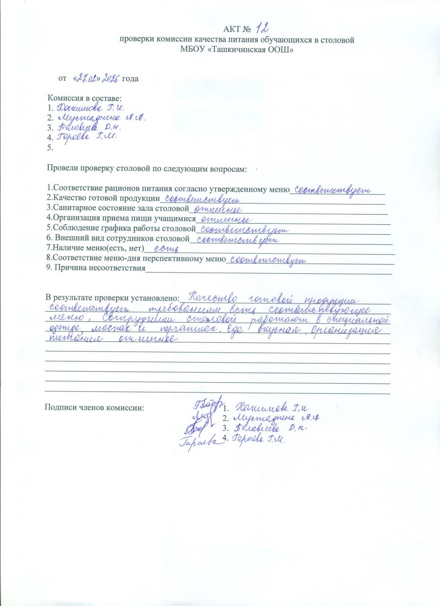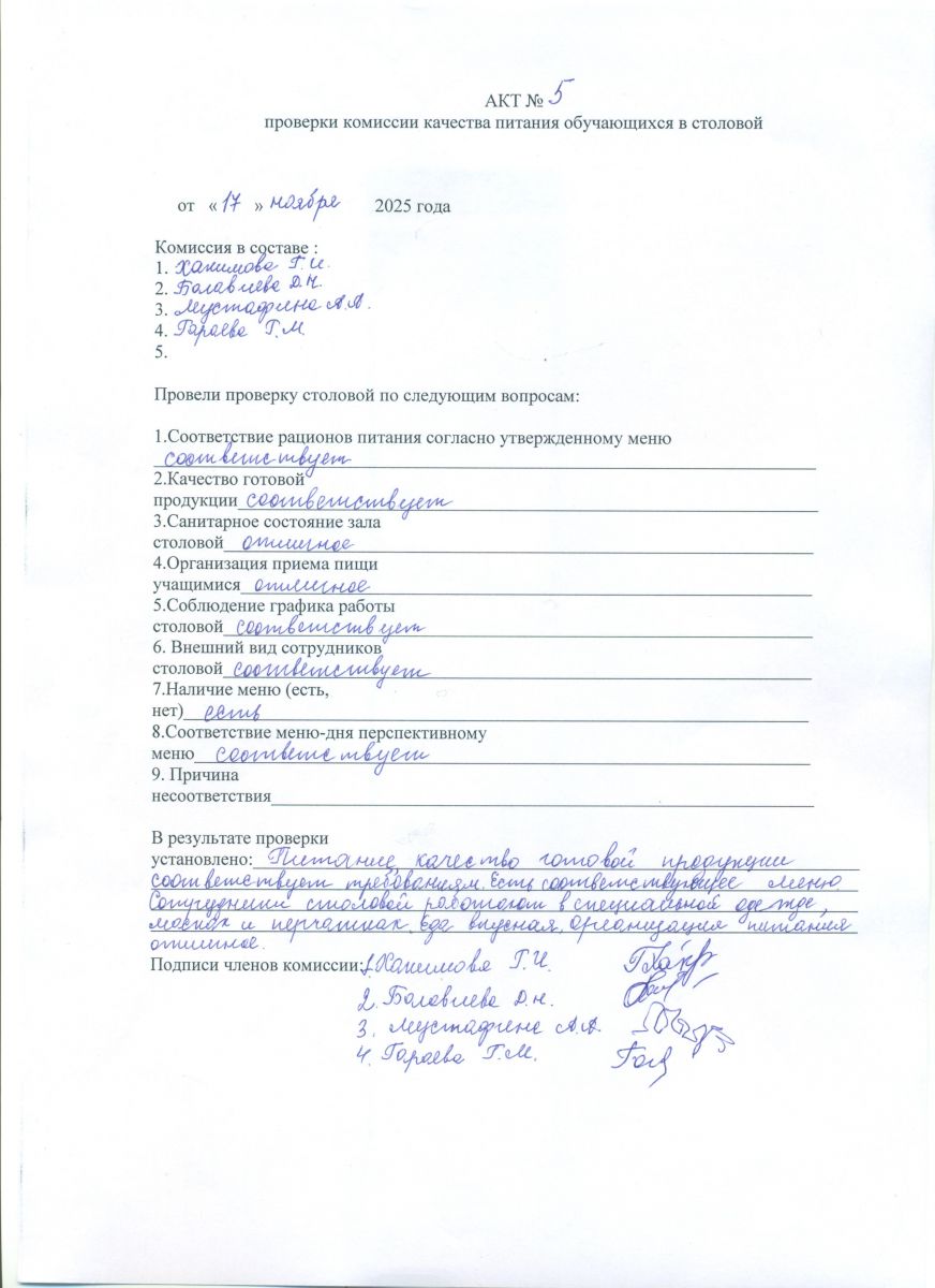 Акты проверки школьной столовой 2025-2026