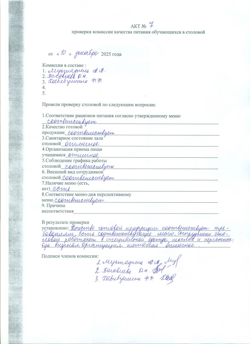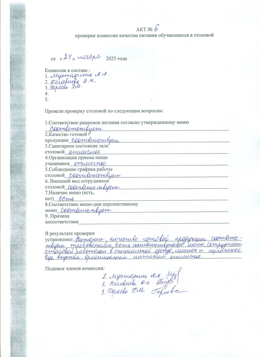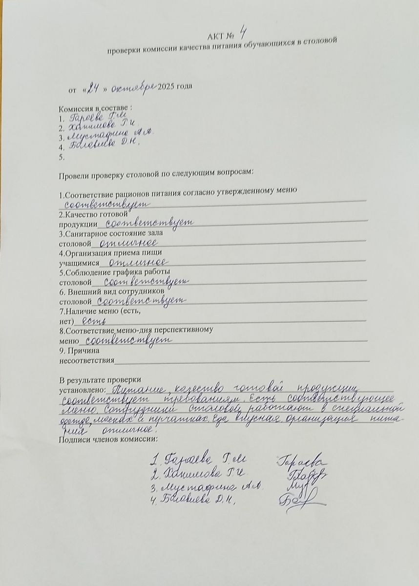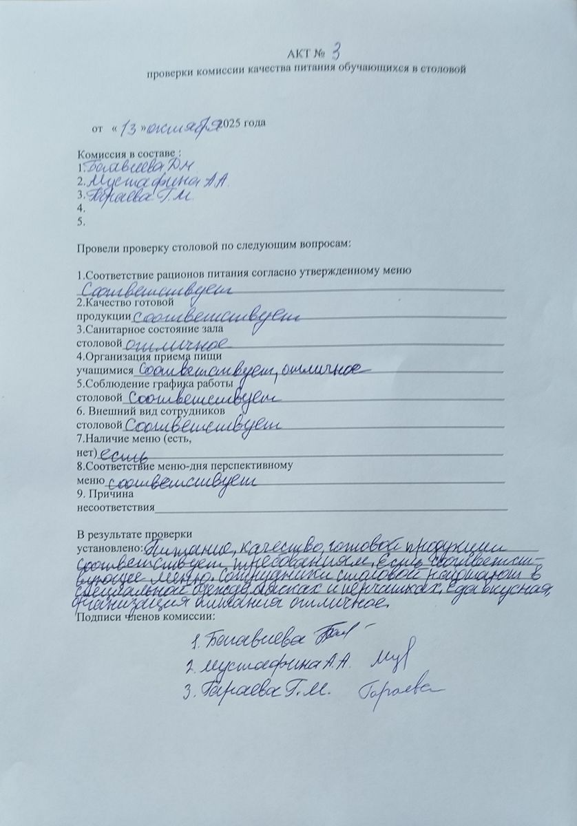 Акты проверки школьной столовой 2024-2025