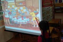Рассматривание картины «Наша кухня».Обогащение активного словарного запаса детей новыми именамисуществительными, глаголами.Активизация вопросительных предложений с вопросительными сло-вами где?, какой?, что делают? -