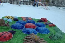 Без балалар белән җәйне искә төшерергә булдык әле.Кар тәгәрәтеп чәчәкле яшел болын һәм бөҗәкләр ясап куйдык. 21.12.2015