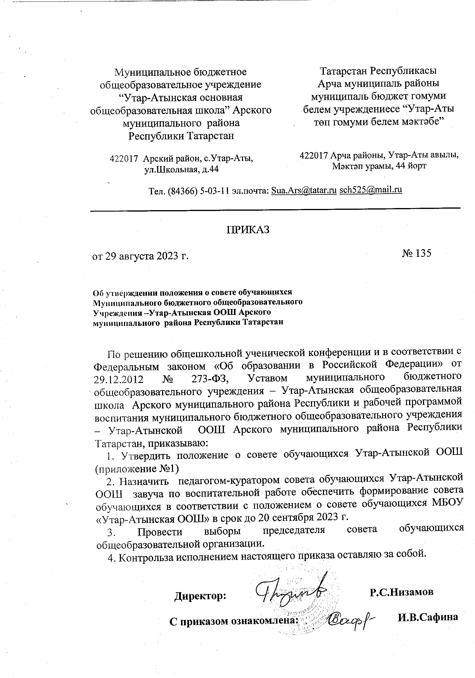 | Адрес: | 422017, РФ, РТ, Арский район, с. Утар-Аты, ул. Школьная, д. 44 |