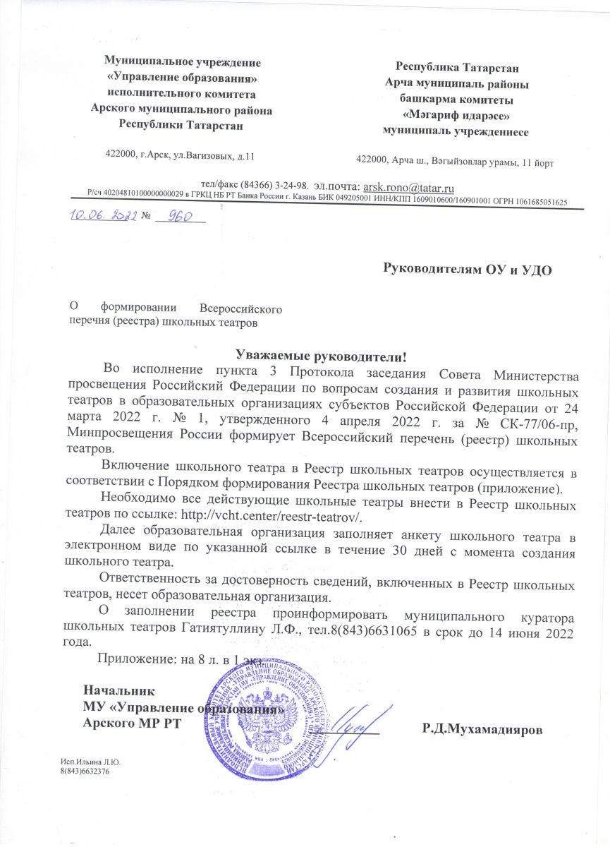О формировании Всероссийского перечня (реестра) школьных театров (960)