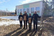 Дети вместе с родителями сделали скворечники. Ученики прикрепили их к деревьям. -