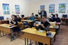 С целью расширения знаний учеников о героических страницах истории нашего Отечества, воспитания патриотизма, гражданственности, чувства гордости и уважения к историческому прошлому Родины в школе были проведены классные часы. Волонтеры раздавали письма в виде фронтовых треугольников, где была информация о Героях – земляках и их подвигах.