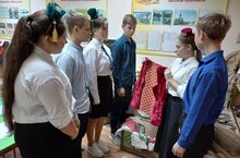" Туган телем сагында" акциясе кысаларында 9 нчы класс укучылары белән "Татар халкының милли киемнәре" дип аталган тәрбия дәресе үткәрелде. Укучылар мәктәп музеенда сакланучы борынгы милли киемнәр, шулай ук, борынгы бизәнү әйберләре белән дә таныштылар Халкыбызның милли кием белән бәйле гореф-гадәтләре турында сөйләштеләр. Видео- презентациядән дә милли киемнәр турында бик күп мәгълүмат алдылар.
