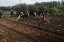Мәктәп бакчасында эш дәвам итә.