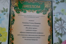 Район кулэмендэ уткэрелгэн "Милли курчак" бэйгесендэ "Ин затлы курчак" номинациясенэ лаек булдык. 15.11.2019