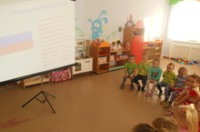Татар теле дәресендә уртанчылар төркеме балалары белән "Минем туган илем - Рәсәй" дигән әңгәмә узды. Балалар бик кызыксынып туган ил, аның тарихы, әләм турында тыңладылар, презентация карадылар һәм төсле кәгазъдән Рәсәй әләмен ясадылар. Эшчәнлек балаларда туган илнең тарихи үткәненә кызыксыну уятты, туган илгә мәхәббәт, горурлык хисләре тәрбияләүдә ярдәм итте.