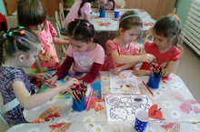 На занятии по аппликации воспитанники старшей группы учились вырезать предмет с помощью трафарета, аккуратно наклеивать элементы аппликации, располагая их в определенном порядке. Занятие по аппликации способствовало развитию чувства композиции, развитию коммуникативных способностей и мелкой моторики рук.