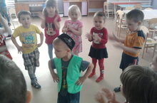 На музыкальном занятии воспитанники младшей группы выполняли танцевальные движения в кругу под музыку Е.Железновой "Танец по кругу". Это способствует развитию музыкальных способностей, эмоциональной отзывчивости на музыку и чувства ритма.