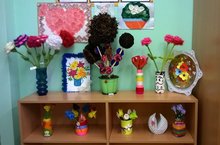 В старшей группе организовали выставку поделок – совместный труд ребёнка и мамы. Воспитатель продолжила знакомство детей с жанром изобразительного искусства - портретом; учила передавать в рисунке характерные особенности лиц, соблюдать пропорции, форму; воспитывала чувство любви и уважения к матери. Дети нарисовали портреты своих мам. Портреты подарили мамам.