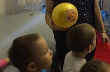 С младшей группой учились ориентироваться в помещениях детского сада. Путь указывал Колобок из сказки.