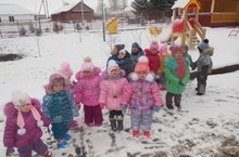 Во время прогулок знакомим детей с характерными особенностями поздней осени: солнце светит редко, холодно, идет снег, укрывая деревья и землю, дует холодный ветер, изучаем свойства снега.