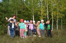 С детьми старшей группы отправились на экскурсию в уголок природы поселка. Закрепили правила поведения на природе, воспитатель рассказал о необходимости оберегать ее, держать в чистоте.