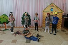 Воспитанники старшей группы инсценировали сказку "Үрдәк беренчелекне алган", используя музыкальные и шумовые инструменты.