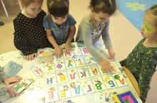 Кечкенә төркем балалары хәрефле пазл җыярга яраталар. Балаларда пазылны җыю уй-фикерне, хәтерне, зирәклекне үстерә. Уен вакытында балаларда бергә уйнарга теләк булдыра, проблемалы хәлне чишүдә ярдәм итә. Уен барышында килешә белү, балалар арасында дуслык хисләрен тәрбияли.