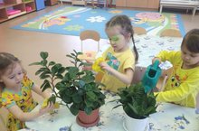 Балалар бакчада бүлмә гөлләре турында кайгыртырга, аларга су сибәргә, дымлы чүпрәк белән тузанын сөртергә, туфракны йомшартырга һәм яфракларына су сиптерергә яраталар. Мондый хезмәт йөкләмәләре бүлмә гөлләренә кызыксыну һәм аларга сакчыл караш тәрбияли.