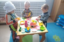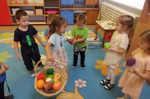 Балалар "Бакчада" уенын уйнаганда яшелчә, җиләк-җимешләрнең исемнәрен дөрес әйтүен ныгыта, сүз байлыкларын баета