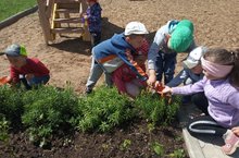 Во время прогулки воспитанники старшей группы наблюдали за цветником на участке детского сада, закрепили умение ухаживать за растениями, поливать, пропалывать, расширили представления о весенних изменениях в природе.