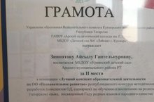 Наш воспитатель Зиннатова Айсылу Гаптелнуровна участвовала в республиканском конкурсе методических разработок по обучению и воспитанию на родном (татарском) языке, посвященного Году родных языков и народного единства и была награждена грамотой за 2 место. Поздравляем!