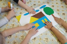 Одним из самых любимых видов творчества у детей-дошкольников является аппликация. В средней группе освоение этого вида изобразительной техники происходит последовательно: закрепляют начальные навыки формирования композиции поделки, составляют изображение из деталей, складывают узоры, учатся правильно держать ножницы, плавно сжимать и разжимать их, резать по прямой, продолжают учиться пользоваться клеем и кисточкой. Данная работа очень нравится детям. В результате они в увлекательной форме закрепляют не только умения, полученные на занятиях по аппликации, но и учатся работать в группах, сочиняют целые рассказы по изображенному сюжету.