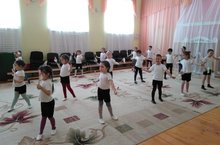 Воспитанники средней группы на занятии по физкультуре выполняли упражнения с мячом. Эти упражнения развивают мелкие и крупные мышцы, увеличивают подвижность суставов пальцев и кистей, усиливают работу важнейших органов организма - легких, сердца, улучшают обмен веществ. При ловле и бросании мяча действуют обе руки, что способствует гармоничному развитию центральной нервной системы и всего организма.